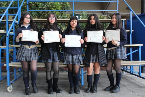 El año pasado cerca de 30 estudiantes fueron seleccionadas por sus méritos en la asignatura de inglés para ser parte de un programa especial provisto por Richmond, empresa de recursos pedagógicos subsidiaria de Santillana, que culminó en la aplicación del examen internacional de competencias idiomáticas TOEFL Junior. La mayoría de las estudiantes elegidas pertenecían al nivel cuarto medio (2024) por lo que ya no son parte de nuestro Liceo. Sin embargo, y de manera excepcional, incluimos también a estudiantes destacadas de tercero medio (hoy en cuarto medio) las cuales acompañaron a sus compañeras de primero medio a las olimpiadas académicas de inglés al Complejo Educacional Monseñor Luis Arturo Pérez, lugar en el que recibieron los diplomas que acreditan su nivel B-2 en esta lengua.